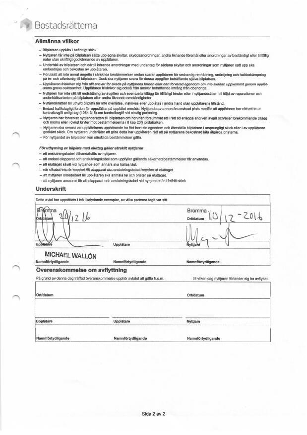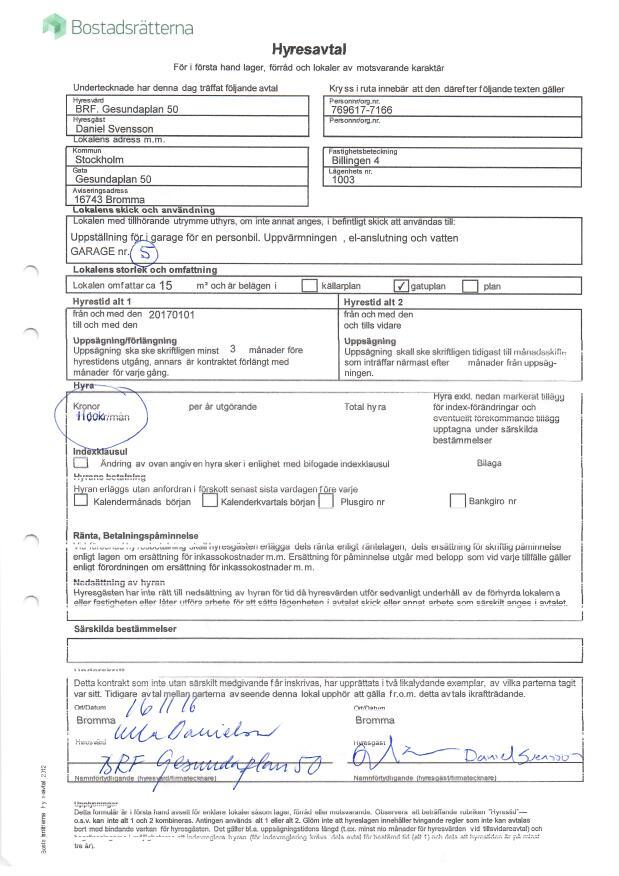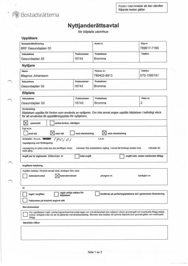 - Avtal för parkeringsplatser 1-5 samt garage 1-6.